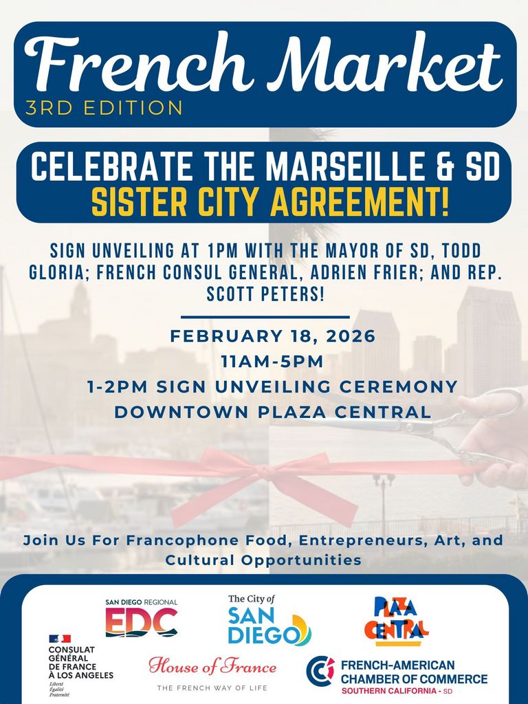 Join us to celebrate the Sister City Agreement between Marseille and San Diego with French cuisine, art, and culture!