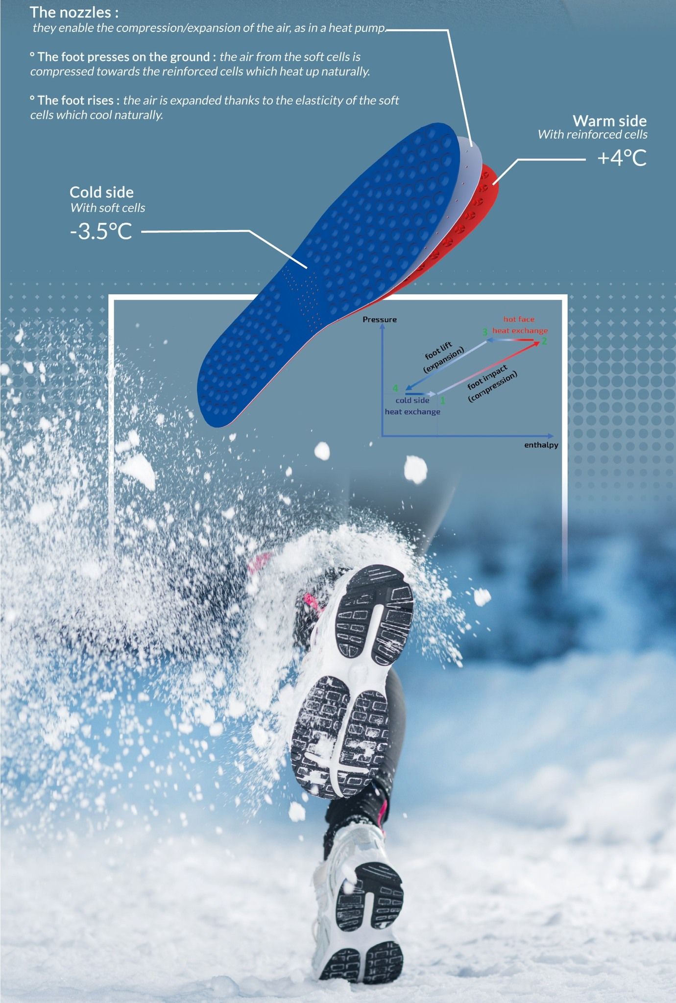 Their products, designed, manufactured, and packaged in France until now, also meet the growing demands for sustainability. 'Our insoles work without batteries or chemicals, but solely using the energy from your steps, so they produce no CO2 during use. They are assembled without glue, allowing us to recycle them when they are sent back for replacement,' explains the founder.